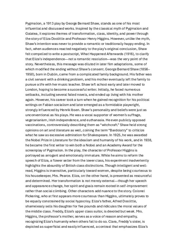 apuntes sobre Pygmalion en inglés, también está la versión en castellano