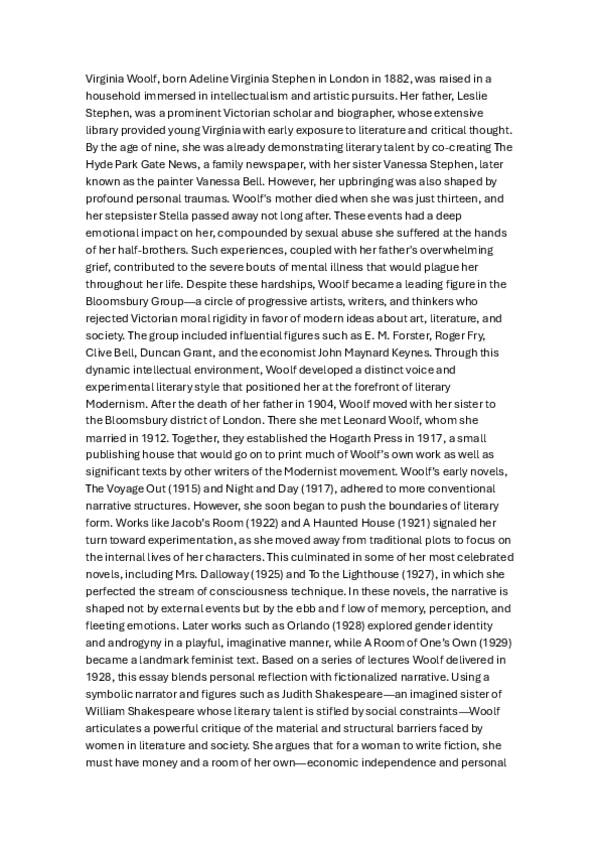 apuntes sobre Virginia Woolf en inglés, también está la versión en castellano