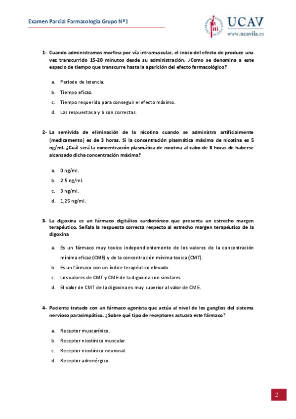 He publicado nuevos examenes de 2º Farmacología: EXAMENPARCIALGRUPO1FARMACOLOGIA.pdf