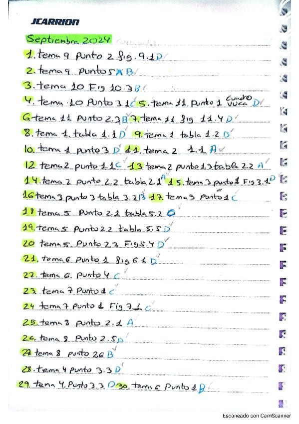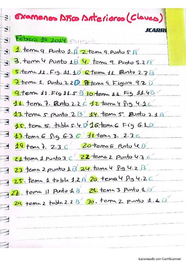 Respuestas de exámenes de años anteriores con su respectivos temas y puntos en los que se encuentran.