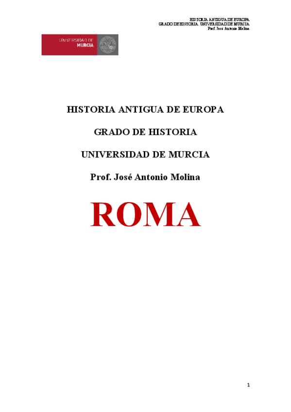 Apuntes de Historia Antigua de Europa (Roma)