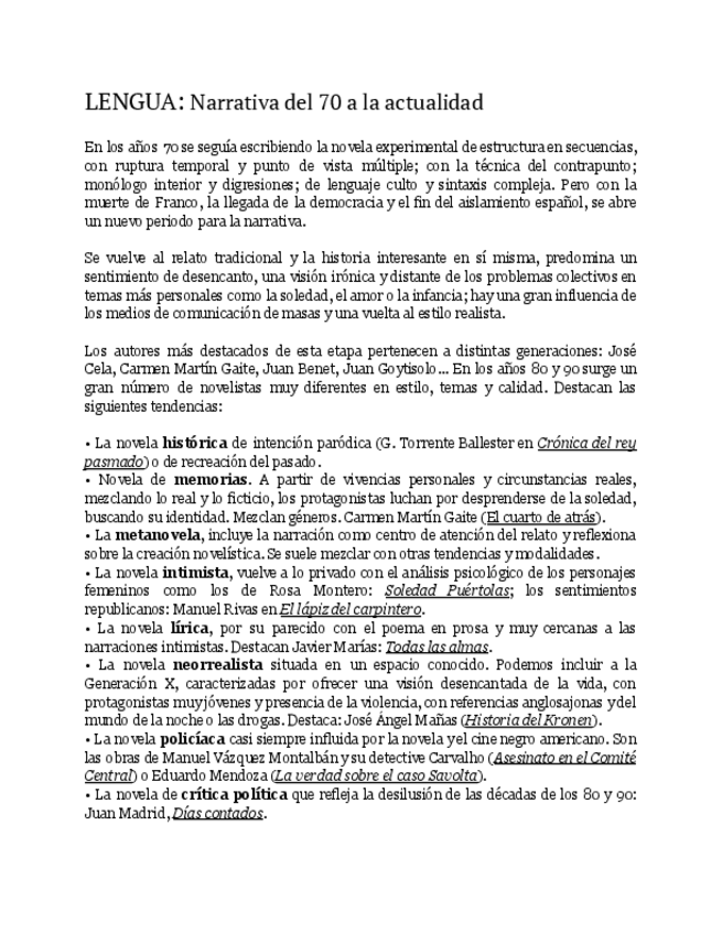 He publicado nuevos apuntes de Lengua Castellana y Literatura II: LENGUA-Narrativa-del-70-a-la-actualidad.pdf