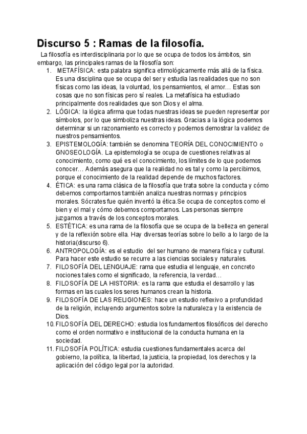 He publicado nuevos apuntes de 1º Filosofía: Discurso5ramasdelafilosofia.pdf