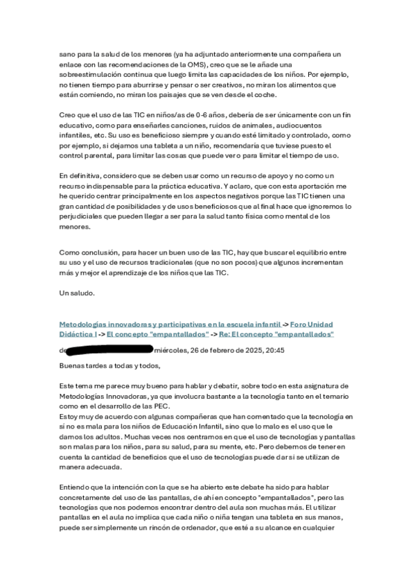 He publicado nuevos pec de 1º Metodologías Innovadoras y Participativas en la Escuela Infantil: participacionforos.pdf