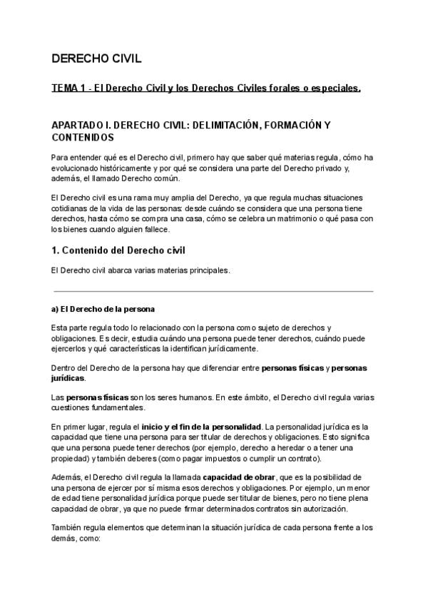 Apuntes de derecho Civil I basados en el manual que recomienda la profesora (Derecho Civil I: Derecho de la persona; Verda y Beamonte). En el manual hay aproximadamente 24 temas mientras que en su guia docente hay como unos 13, pero al fin y al cabo es el