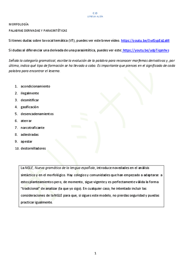 He publicado nuevos ejercicios de 1º Lengua Castellana y Literatura I: 1.-Morfologia-Bachillerato-cadenas.pdf