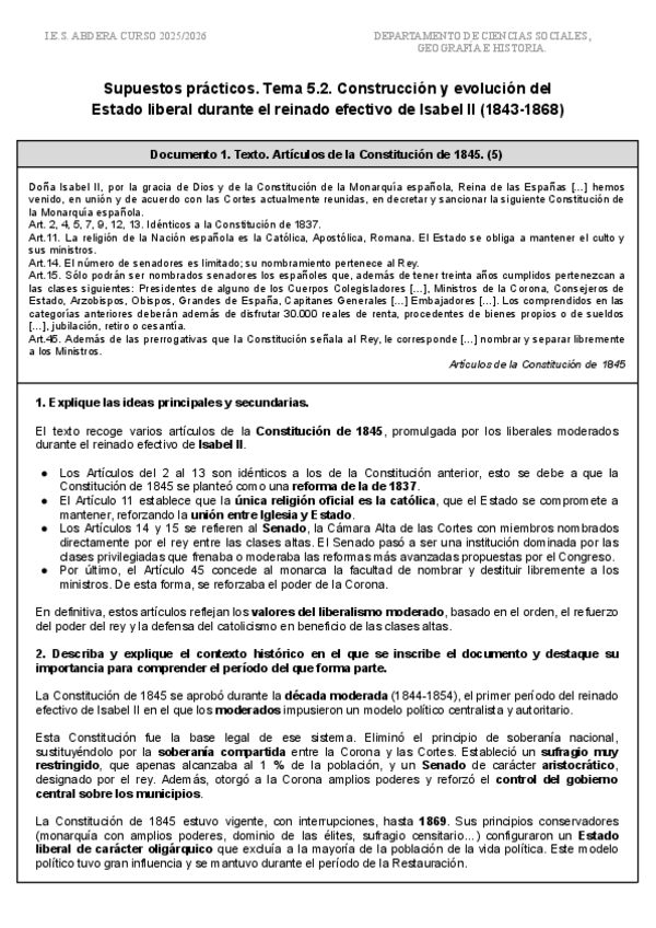 Tema 5.2. Construcción y evolución del Estado liberal durante el reinado efectivo de Isabel II (1843-1868)