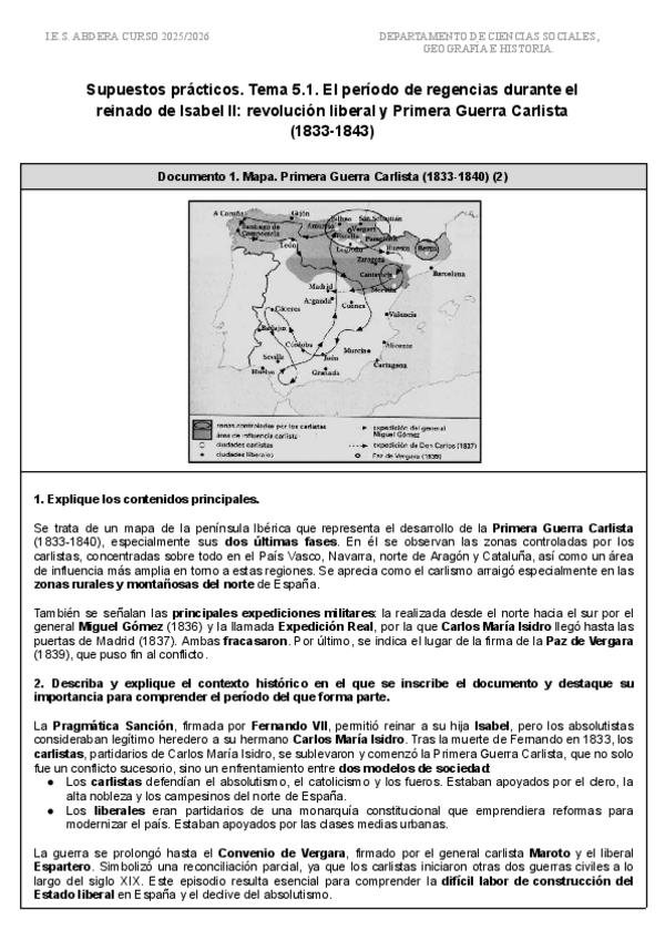Tema 5.1. El período de regencias durante el reinado de Isabel II revolución liberal y Primera Guerra Carlista
