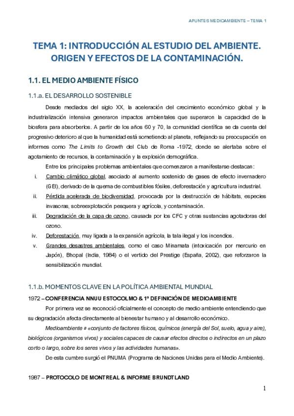Apuntes MEDIOAMBIENTE del TEMA 1 --- Información de las diapositivas y clases de Almudena
