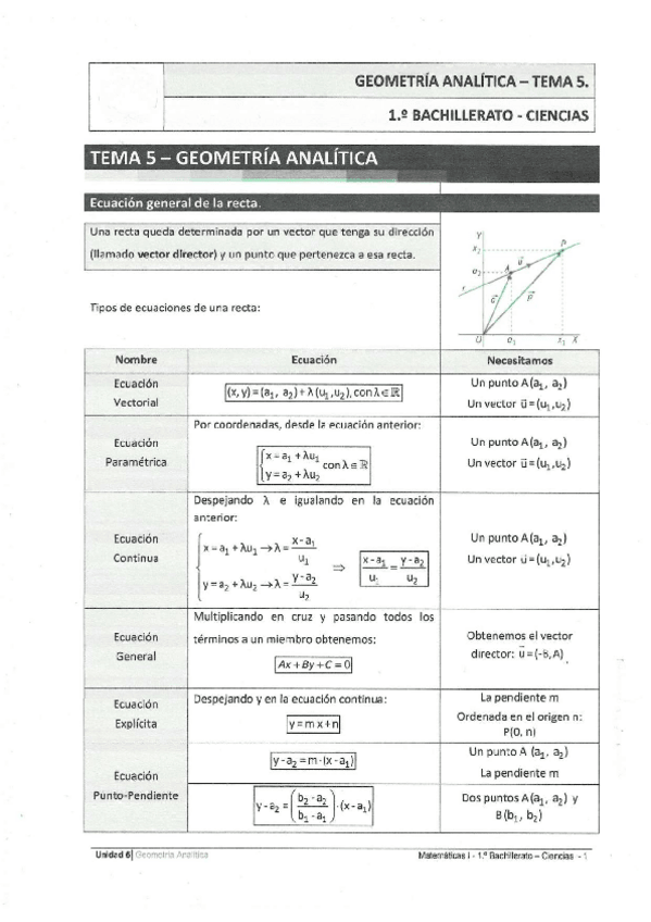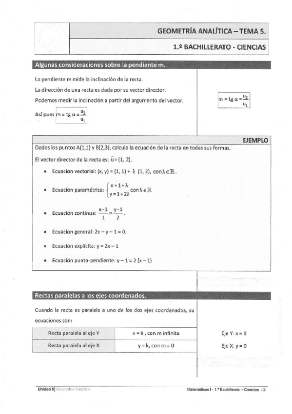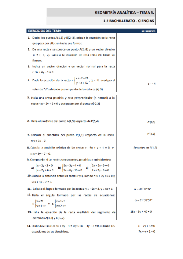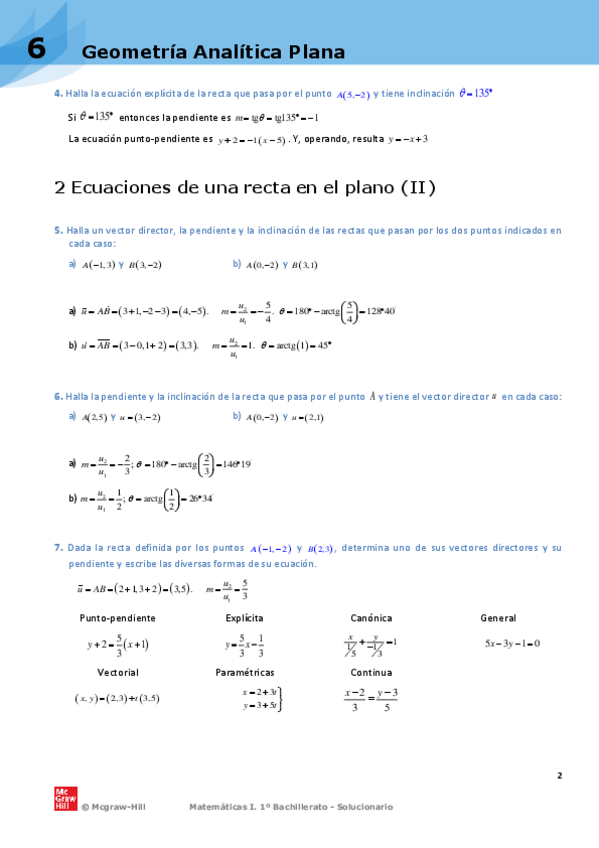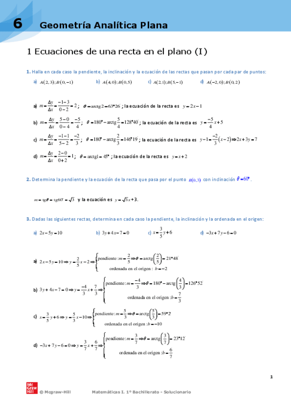 SOLUCIONARIO EJERCICIOS UNIDAD 6 GEOMETRÍA ANALÍTICA PLANA 1 BACH