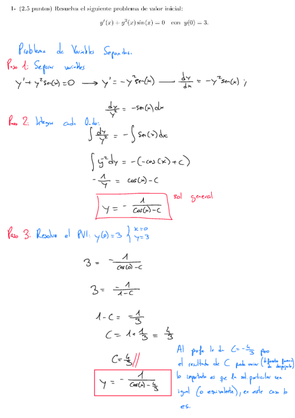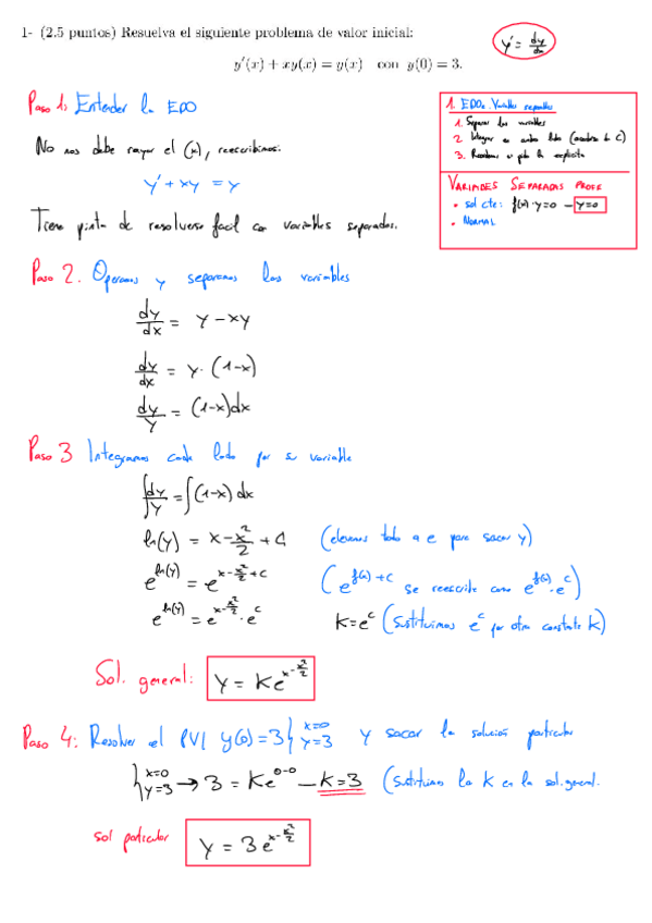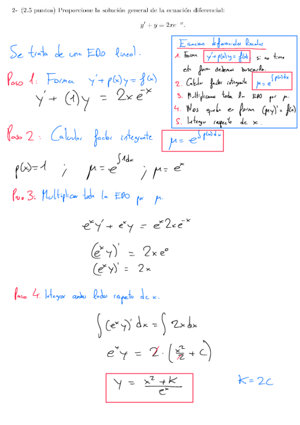 Examen de EDOs resuelto por pasos del 2 de julio de 2024.