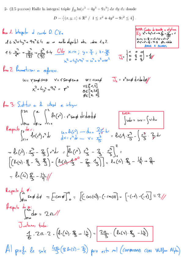 Examen de Integrales del 2 de julio de 2024 de Ingeniería de Materiales resuelto por pasos.