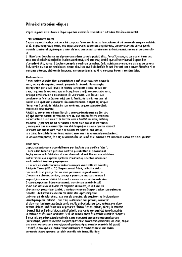 Aquest document ofereix un resum entenedor de les principals ètiques de la filosofia, és a dir, dels diferents corrents que expliquen com s’ha de comportar l’ésser humà per actuar moralment bé. El document és útil per preparar exàmens de filosofia, fer