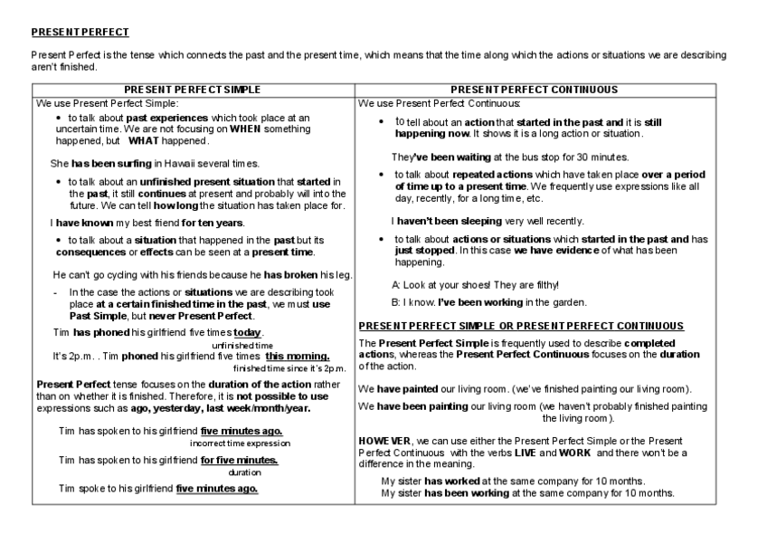 Este documento explica de manera clara y ordenada el uso del Present Perfect en inglés, uno de los tiempos verbales más importantes para hablar de acciones pasadas con conexión al presente. El material es ideal para repasar gramática inglesa, preparar ex