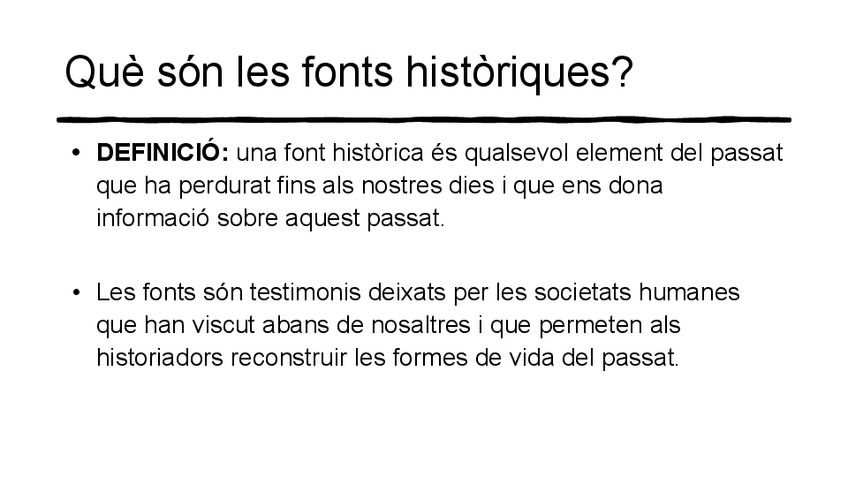 Aquesta presentació PowerPoint ofereix una explicació visual i esquemàtica sobre les fonts històriques, un concepte fonamental per entendre com treballen els historiadors i com es reconstrueix el passat. És un material molt útil per estudiar història de