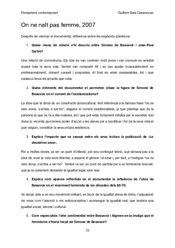Respostes a les preguntes del documental "On ne naît pas femme", del curs 2025-26.
