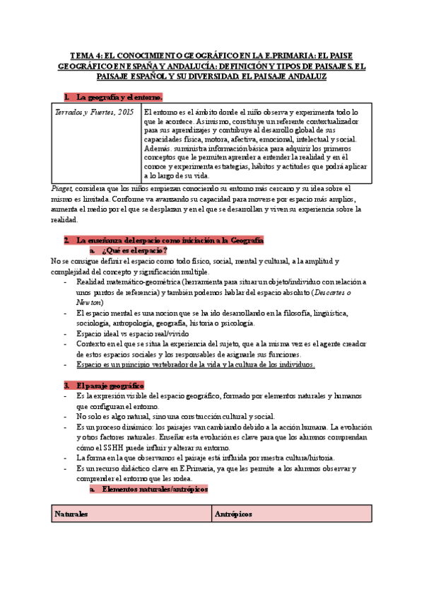 TEMA 4: EL CONOCIMIENTO GEOGRÁFICO EN LA E.PRIMARIA: EL PAISE GEOGRÁFICO EN ESPAÑA Y ANDALUCÍA: DEFINICIÓN Y TIPOS DE PAISAJES. EL PAISAJE ESPAÑOL Y SU DIVERSIDAD. EL PAISAJE ANDALUZ