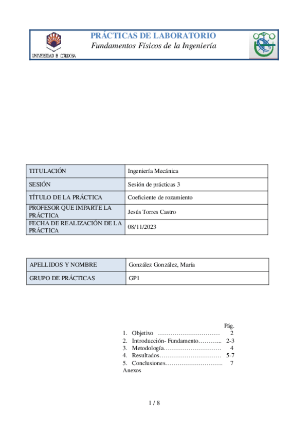 He publicado nuevos practicas de 1º Fundamentos Físicos en la Ingeniería I: MemoriaPractica3.odt