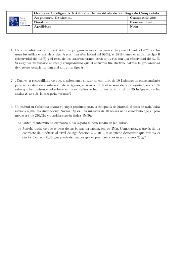 He publicado nuevos examenes de 1º Estadística: EjemploFinalJunio2023.pdf