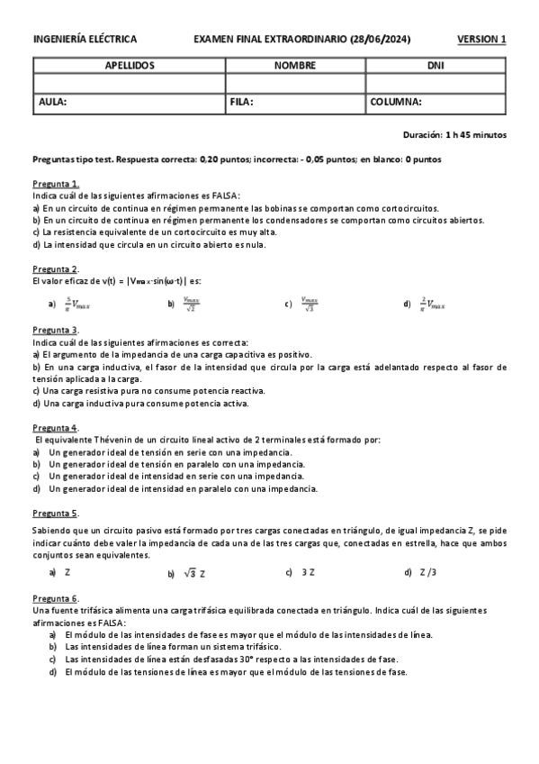 He publicado nuevos examenes de 2º Circuitos Eléctricos y Electrotecnia: EXTRAORDINARIO con Solución