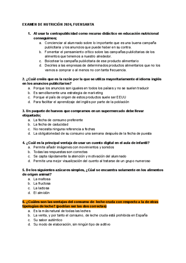 Exam. Nutrición