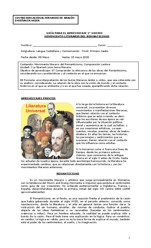 He publicado nuevos apuntes de 1º Lenguaje y Comunicación / Lengua y Literatura: GUIA-N-4-LENGUAJE-1MEDIO-Romanticismo.pdf