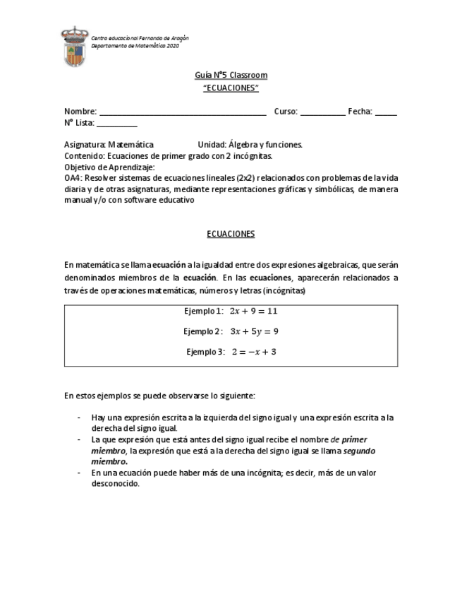 He publicado nuevos ejercicios de 1º Matemática: GUIA-N13-MATEMATICA-1-MEDIO-ecuaciones.pdf