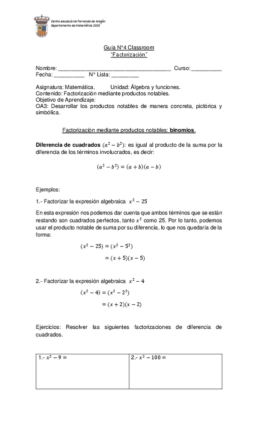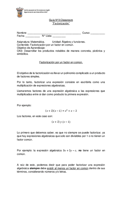 He publicado nuevos ejercicios de 1º Matemática: GUIA-N12-MATEMATICA-1-MEDIO-factorizacion-2.pdf