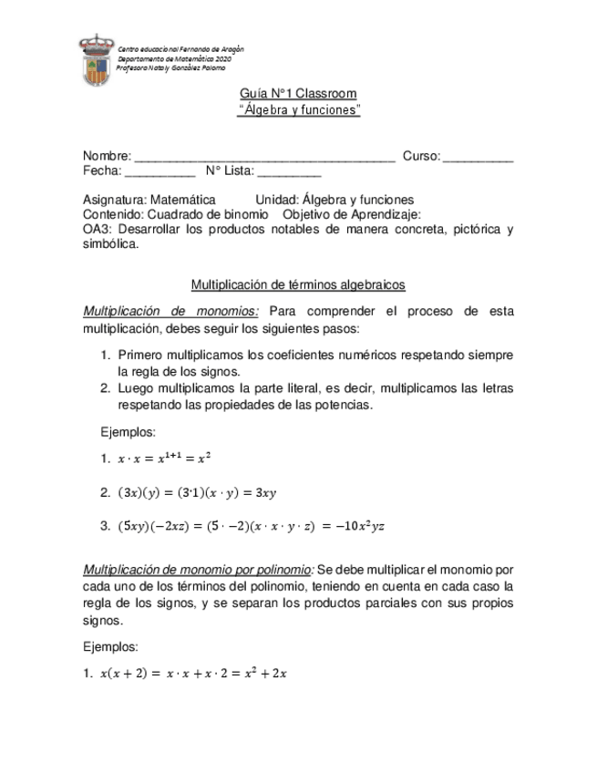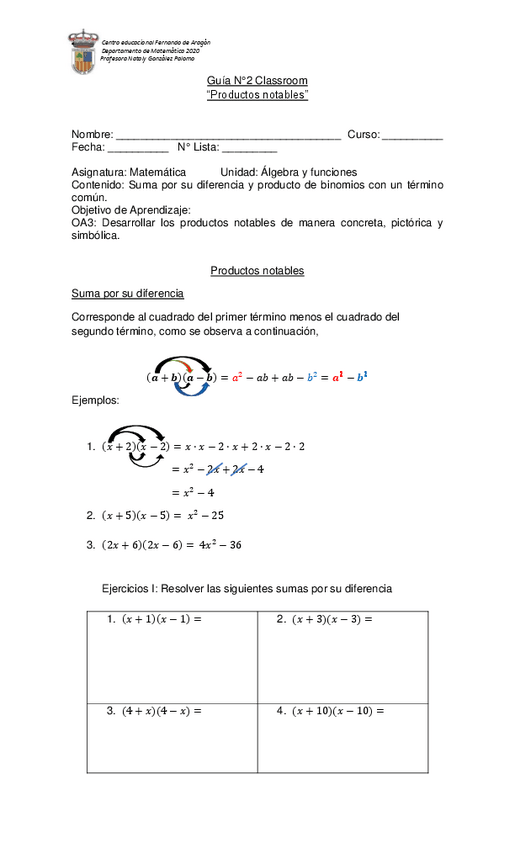 He publicado nuevos ejercicios de 1º Matemática: GUIA-N10-MATEMATICA-1MEDIO-productos-notables.pdf