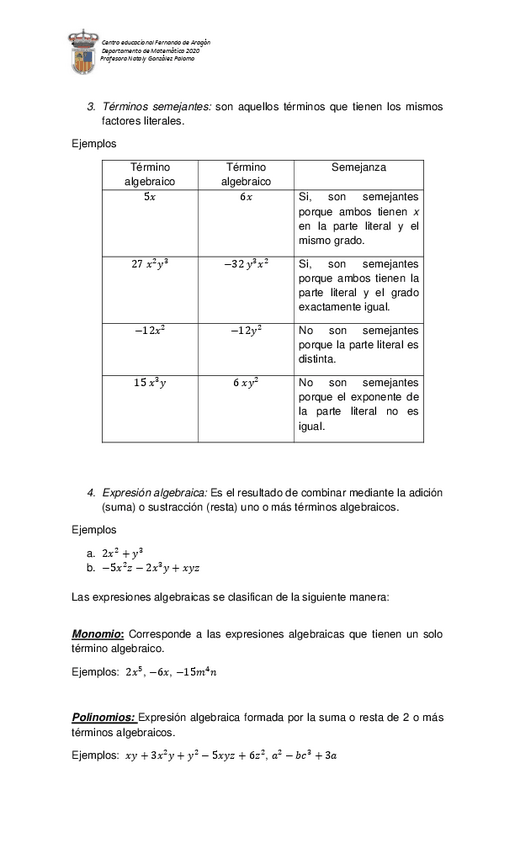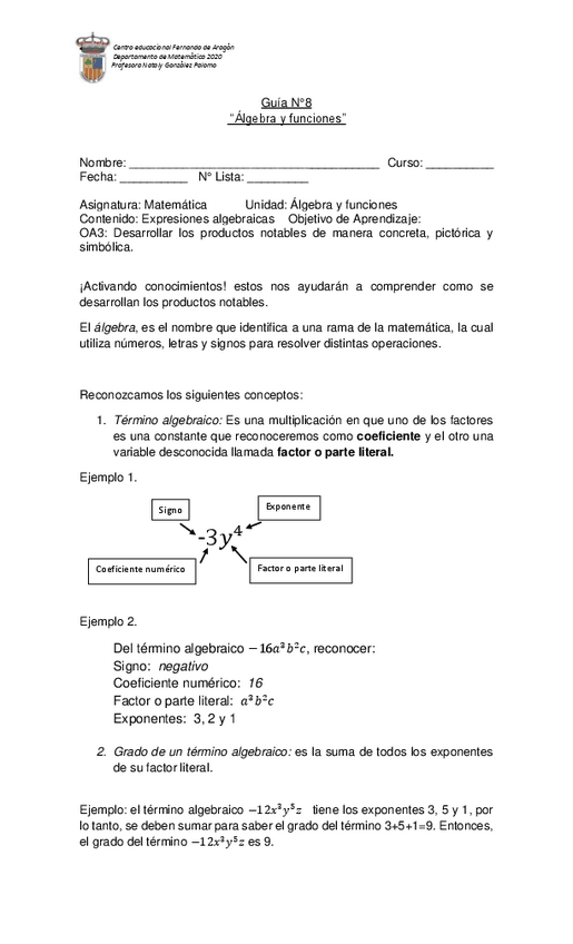 He publicado nuevos ejercicios de 1º Matemática: GUIA-N8-MATEMATICA-IMedio-algebra-y-funciones.pdf