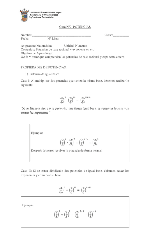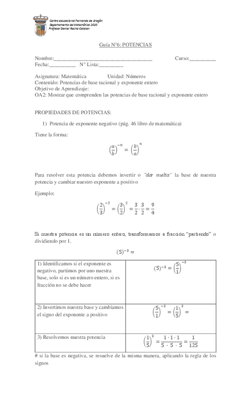 He publicado nuevos ejercicios de 1º Matemática: GUIA-N6-MATEMATICA-1MEDIA-potencias.pdf