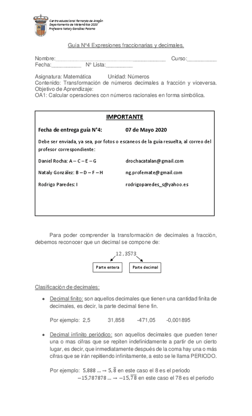 He publicado nuevos ejercicios de 1º Matemática: Guia-N-4-MATEMATICA-1-Medio-expresiones-fraccionarias-y-decimales.pdf