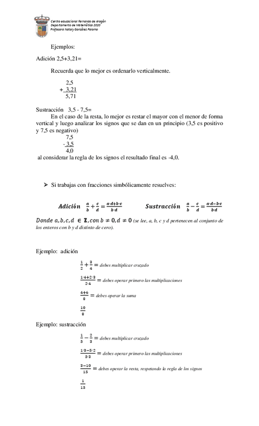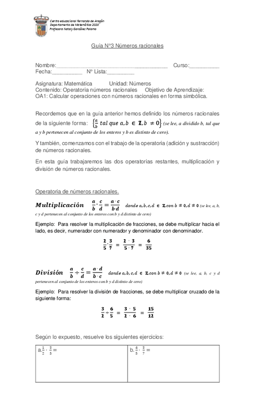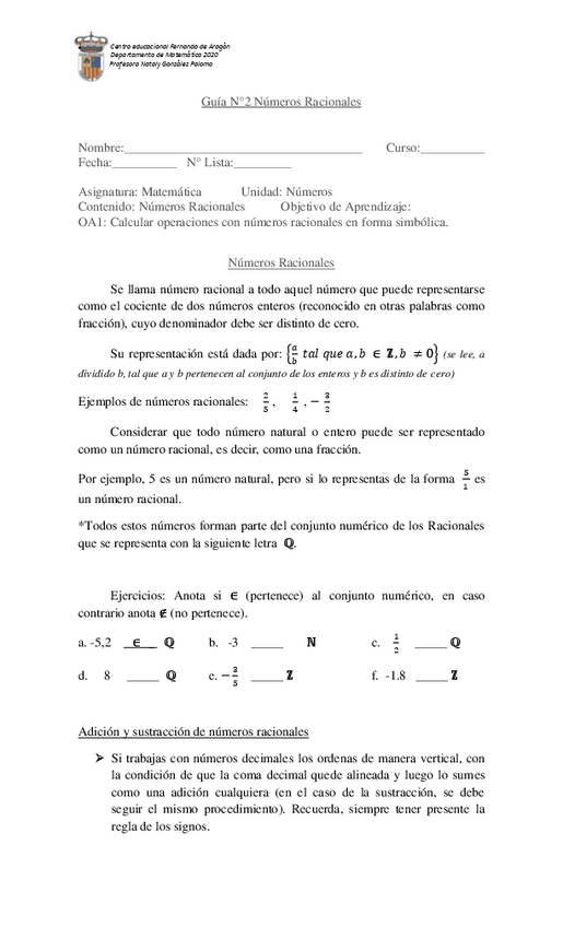 He publicado nuevos ejercicios de 1º Matemática: Guia-N2-Matematica-1-Medio-racionales.pdf