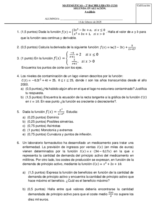 He publicado nuevos examenes de 2º Matemáticas aplicadas a las Ciencias Sociales II: Examen-funciones.pdf