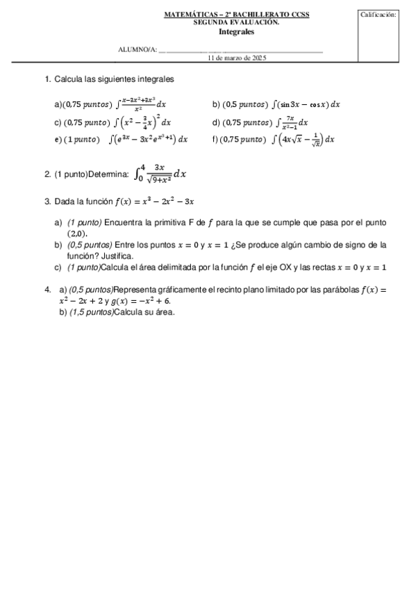 He publicado nuevos examenes de 2º Matemáticas aplicadas a las Ciencias Sociales II: Examen-integrales.pdf