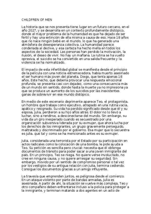 trabajo sobre la pelicula de children of men o trabajo voluntario