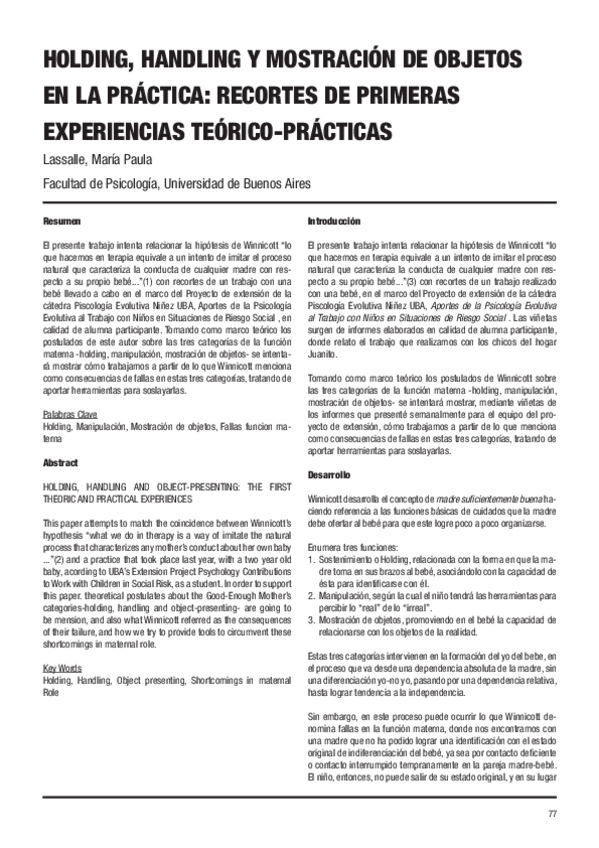 He publicado nuevos otros de 1º Estructura y Desarrollo Psicológico II: Lassalle-MarAa-Paula-2012.-Holding-handling-y-mostraciAn-de-objetos-en-la-prActica-recortes-de-primeras-experiencias-teArico-prA-....pdf