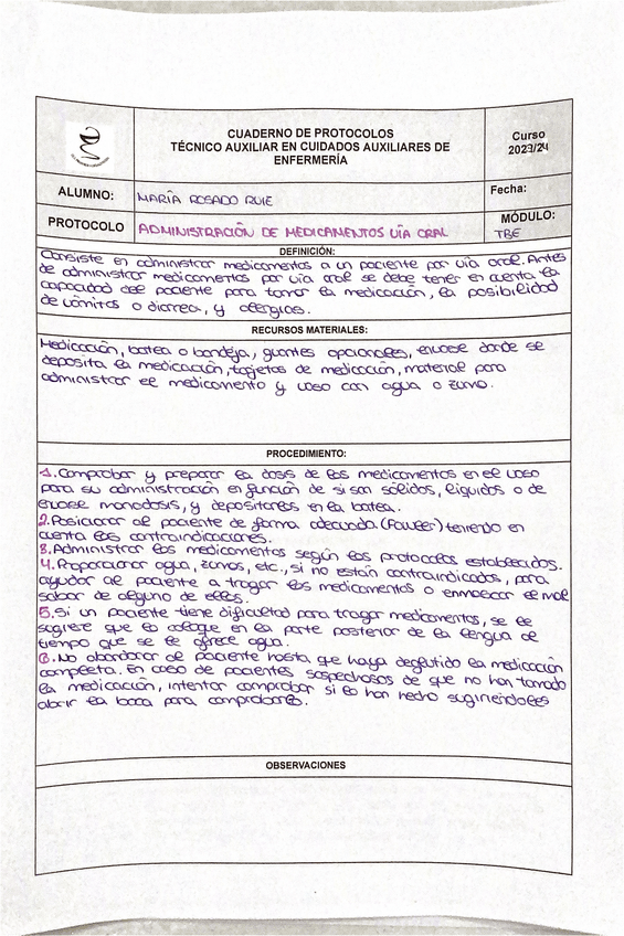 Estudios: Cuidados Auxiliares de Enfermería