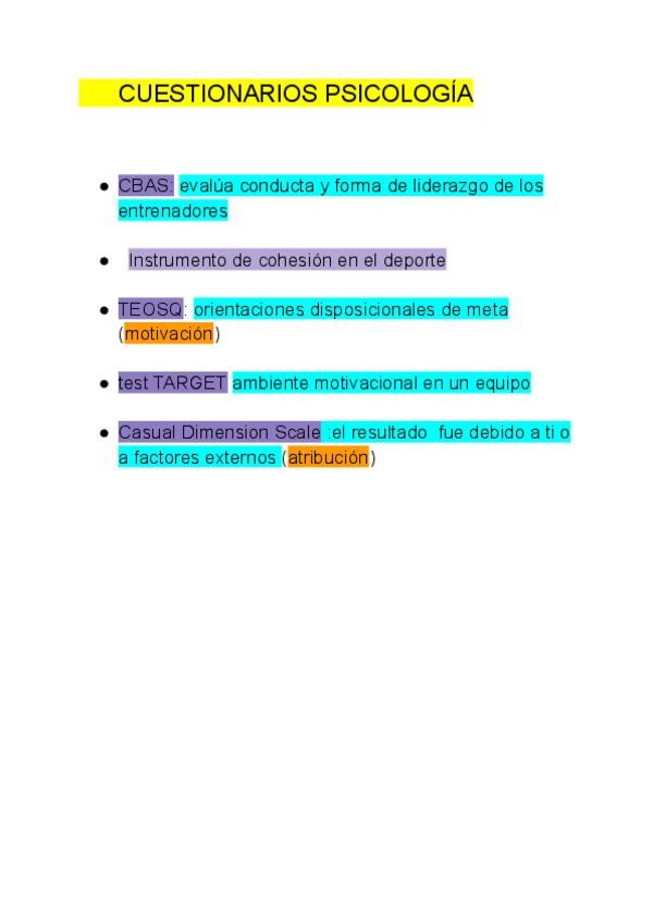 Lista de los cuestionarios de evaluación usados en la psicología del deporte y mencionados en clase
