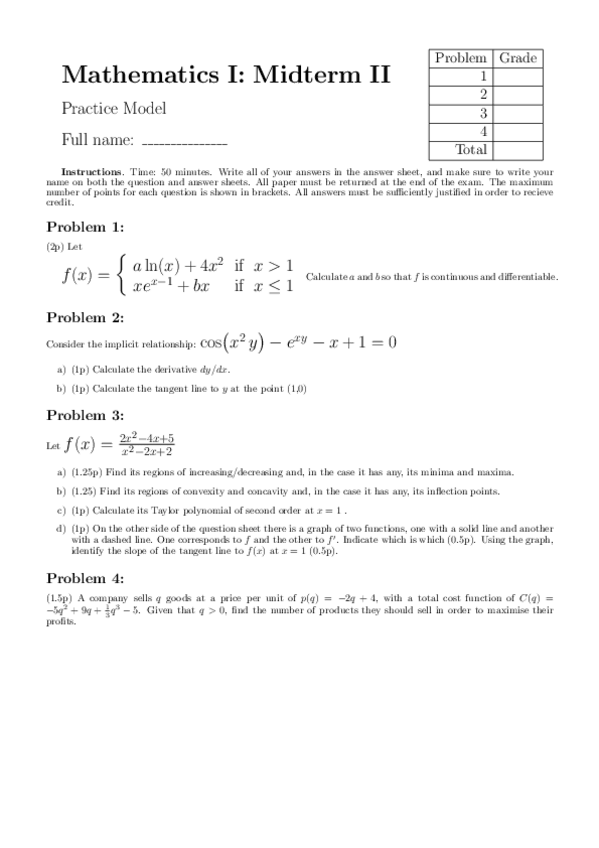 He publicado nuevos examenes de 1º Matemáticas I: Midtermmodelpractice.pdf