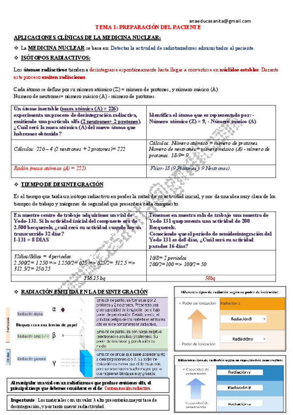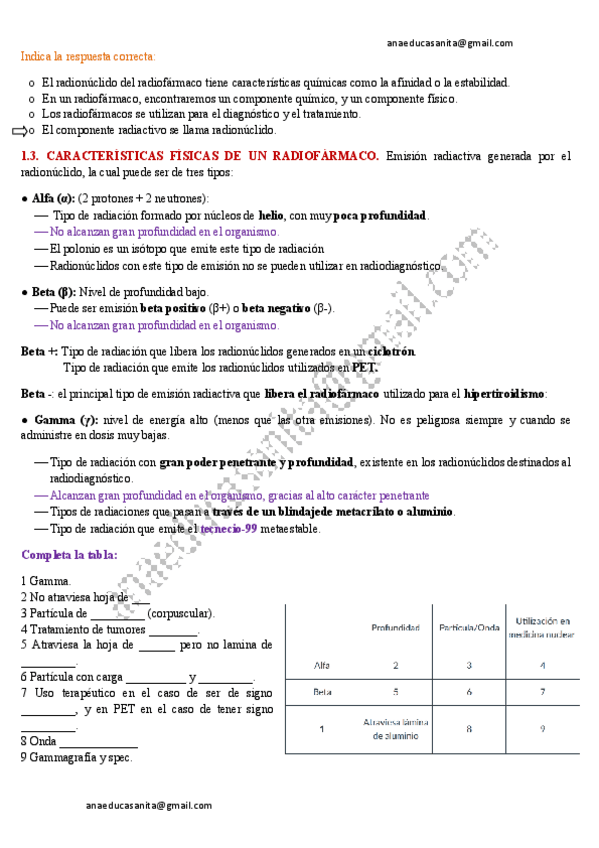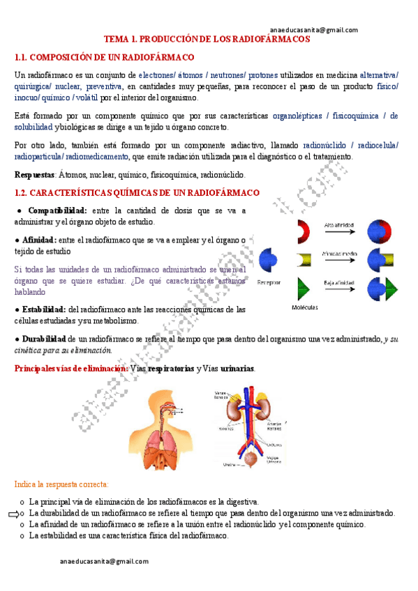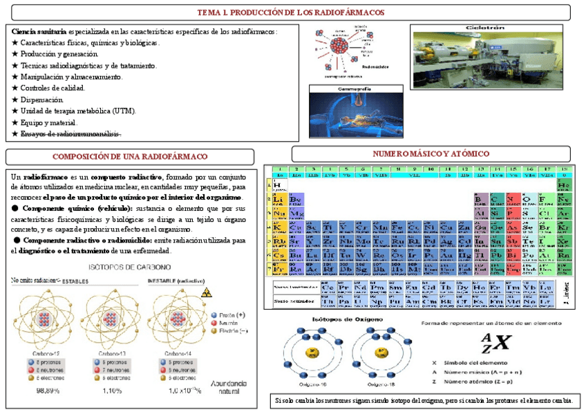 Resumen Radiofarmacia con preguntas examen: Tema 1. Producción de los radiofármacos; Tema 2. Marcaje del radiofármaco; Tema 3. Terapia metabólica: