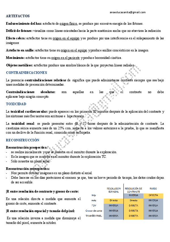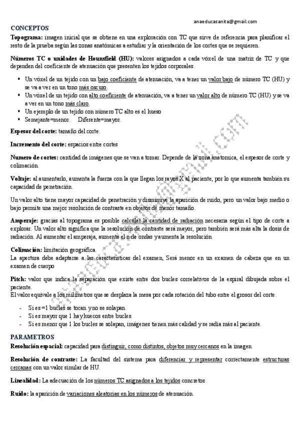 Resumen UF1 Tomografía computarizada, cosas de examen y pac