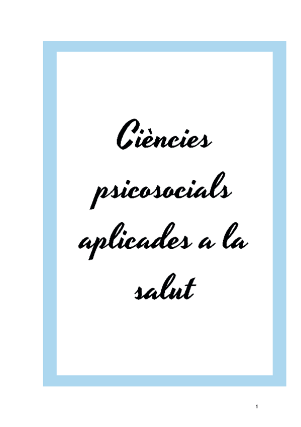 Apuntes de la asignatura ciencias psicoaocials aplicadas a la salut ambigú preguntes d'examen. Subratllat en gro les possibles preguntes d'exàmen.