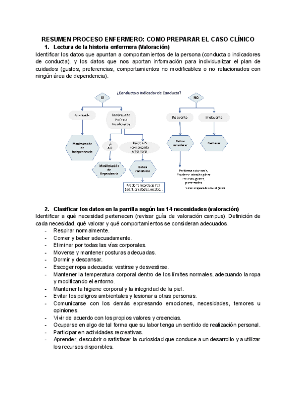 Resumen sobre el proceso enfermero para la resolución del caso clínico final