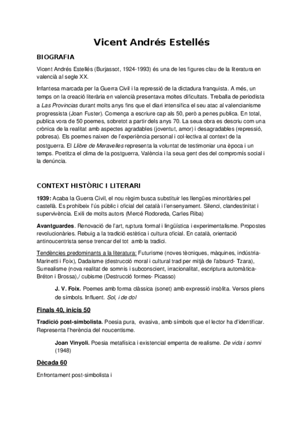 He publicado nuevos apuntes de 2º Lengua Valenciana y Literatura II: Vicent-Andres-Estelles.-Context.docx