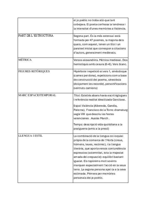 Todos les poemas de vicent Andrés Estellés analizados. Tema, resumen, estilo, figuras retóricas, marco espaciotemporal y referencias a la realidad, valoración