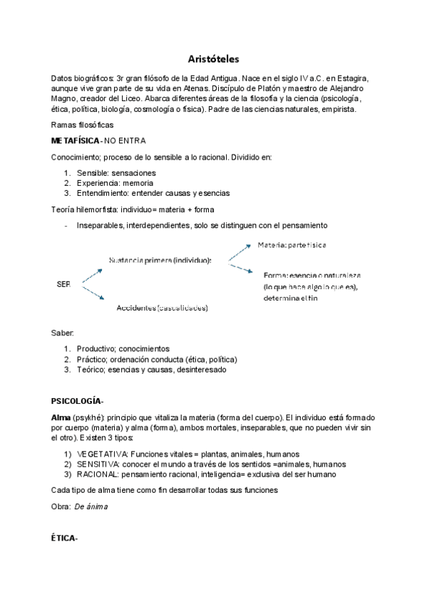 Apuntes sobre Aristóteles, Descartes, Hume, Racionalismo y Empirismo, La Edad Media, Fe y razón, Contractualistas y vocabulario para las PAU