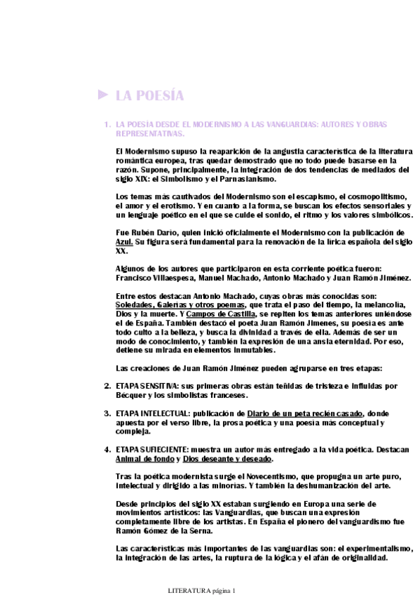 Apuntes de toda la poesía y teatro, y la novela desde principios del siglo XX hasta 1939