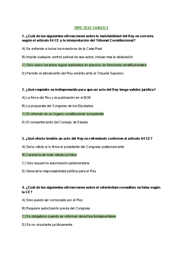 Tipo Test de la asignatura Derecho Constitucional: Organización Constitucional y Territorial del Estado. Es un tipo test con posibles preguntas que pueden caer en el examen final, el cual se compone de varias partes teóricas y una parte tipo test. Profes