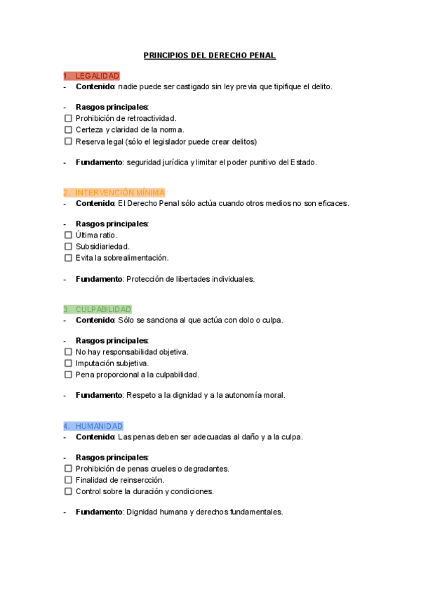 Resumen de los principios más importantes del Derecho Penal. Asignatura: Fundamentos de Derecho Penal y Consecuencias Jurídicas del Delito. Profesora: Margarita Rosa Valle Mariscal de Gante